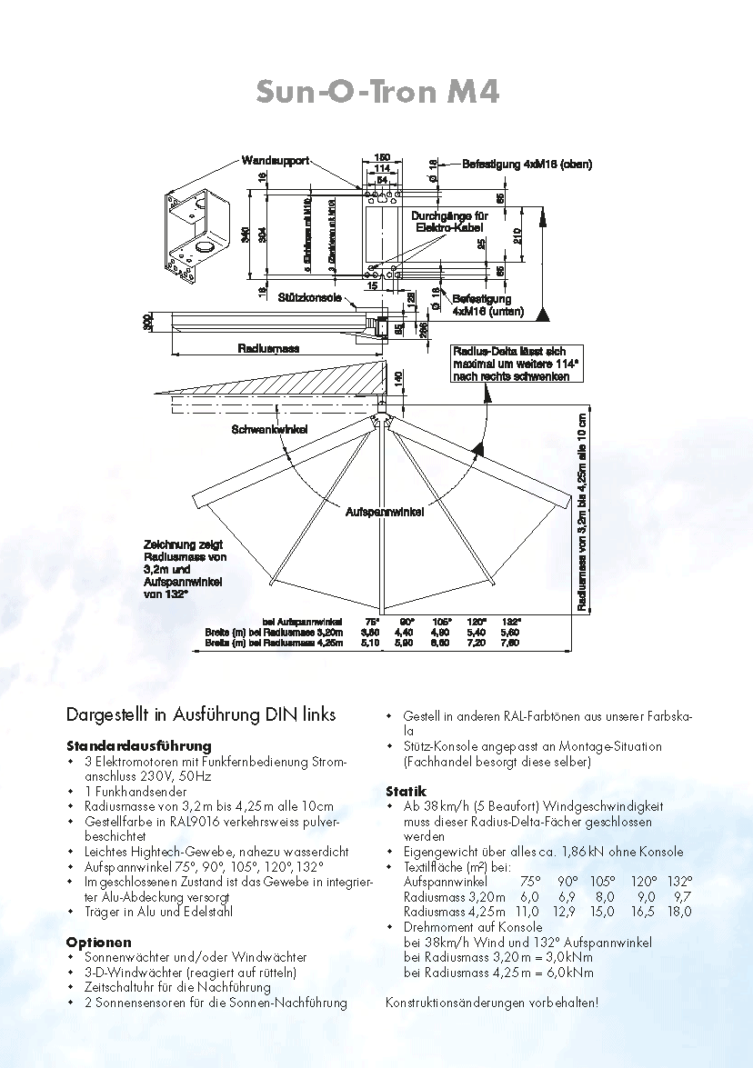 From 40 km/h wind force the sun-o-tron® M4 must be closed. Subject to design and price changes.